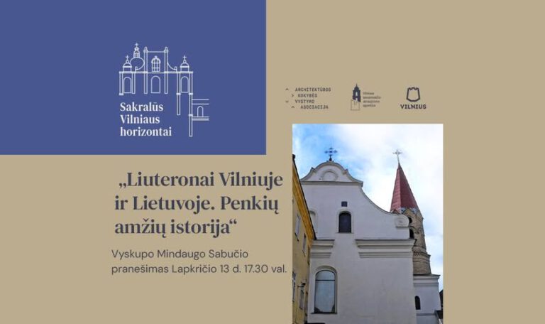 Lapkričio 13 d. 17.30 val. kviečiame į renginių ciklo „Sakralūs Vilniaus horizontai“ susitikimą, kurio tema – „Liuteronai Vilniuje ir Lietuvoje. Penkių amžių istorija“. Renginys vyks
