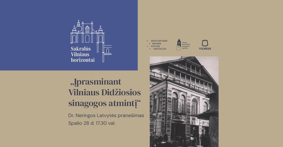 2025-10-23 Įprasminant Vilniaus Didžiosios sinagogos atmintį Spalio 28 d. 17.30 val. kviečiame į renginių ciklo „Sakralūs Vilniaus horizontai“ susitikimą tema –