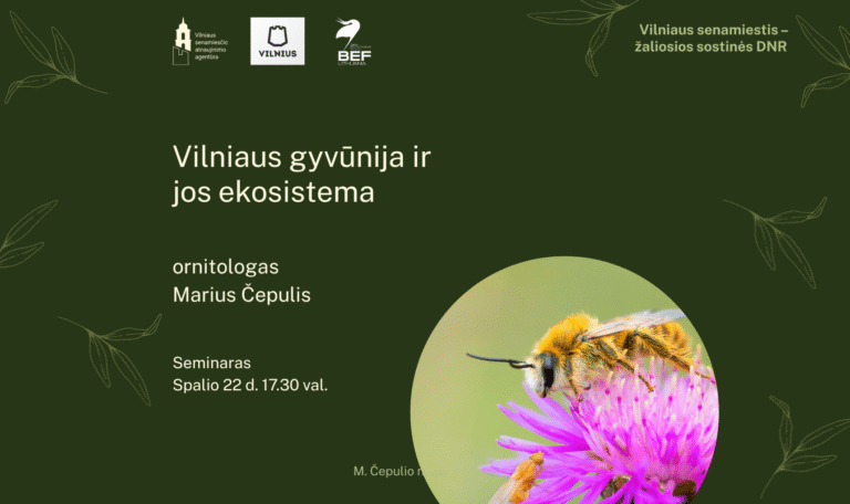 Spalio 22 d. 17.30 val. kviečiame į gyvą ir įkvepiantį ornitologo Mariaus Čepulio seminarą „Vilniaus gyvūnija ir jos ekosistema“, kuriame bus kalbama apie tai, ką iš tiesų reiškia būti gyvam Vilniuje – ne tik žmogui, bet ir zyliukei, miegapelei, šikšnosparniui ar vabaliukui po grindinio akmeniu. Renginys yra aplinkosauginio švietimo ciklo „Vilniaus senamiestis – žaliosios sostinės DNR“ dalis.